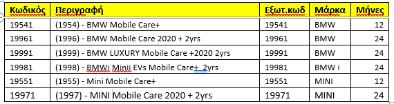 Αυτά παρέχονται από την MODIAL ή την BMW. Στο πεδίο «Εξωτερικός Κωδικός» του προγράμματος ασφάλισης πρεπει να μπαινει ο κωδικος του προγράμματος από την MODIAL. Τα διεθεσιμα προγραμματα από την MODIAL