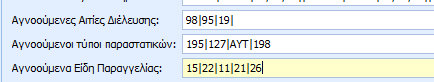 αγνοουμενε ειδη παραγγελιας. Μπορουμε να ορισουμε σε κάθε πεδιο κωδικους
