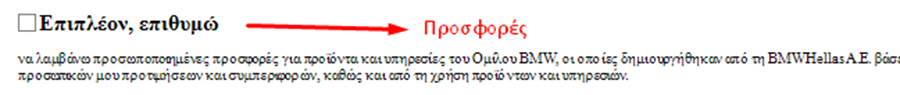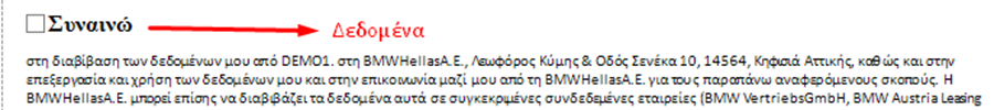 o Μάρκα. Πρέπει να υπάρχει συναίνεση για μία τουλάχιστον μάρκα του BMW Group (BMW, BMWi, BMW MOTO, MINI). Η διαδικασία λαμβάνει την πιο πρόσφατη συναίνεση του πελάτη που υπάρχει για το BMW Group.