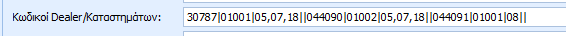 Στο πεδιο αυτό συμπληρωνουμε ανα κατάστημα, τον κωδικο καταστηματος|Ονομα χρηστη|ΜυστικοΚωδικό. Τα καταστηματα διαχωριζονται με || ενώ οι κωδικοι με |.