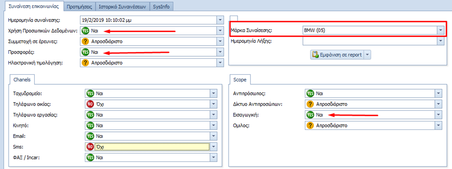 Οι συναινέσεις δεν μπορει να τροποποιηθούν. Μόνο το πεδίο “Μαρκα” είναι διαθέσιμο για τροποποίηση