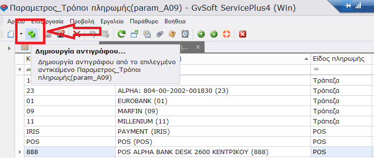 Στη συνέχεια θα πρέπει να γίνει δημιουργία αντιγράφου όλων των τρόπων πληρωμής που αφορούν POS, πατώντας το κουμπί «Δημιουργία αντιγράφου»: