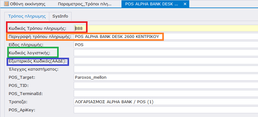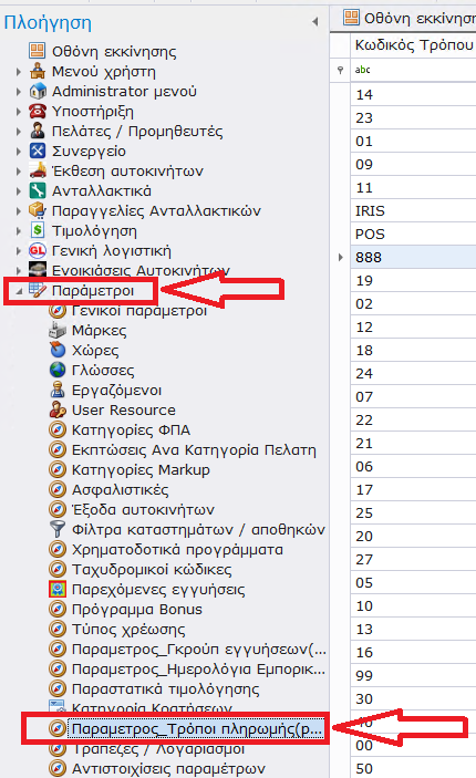 Θα πρέπει να πάμε στην επιλογή «Παράμετροι Παράμετροι_Τρόποι Πληρωμής» όπως φαίνεται και στην παρακάτω εικόνα: