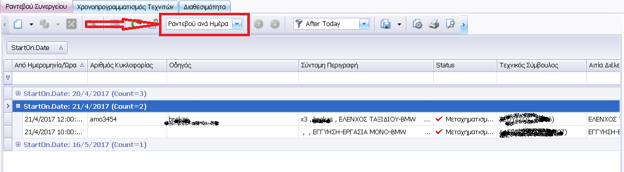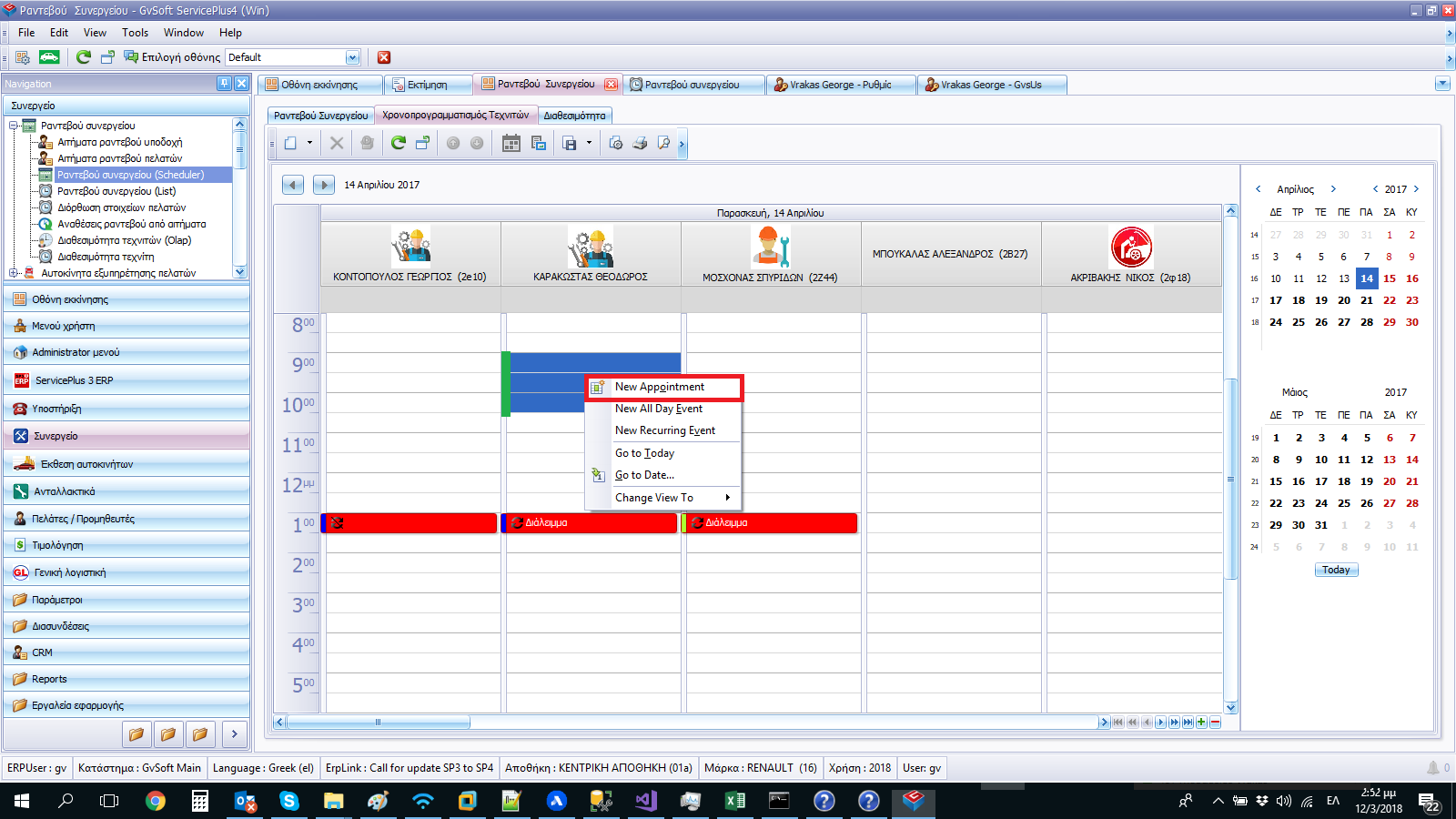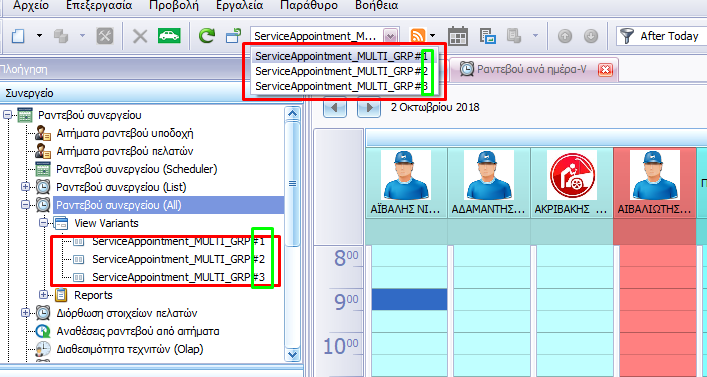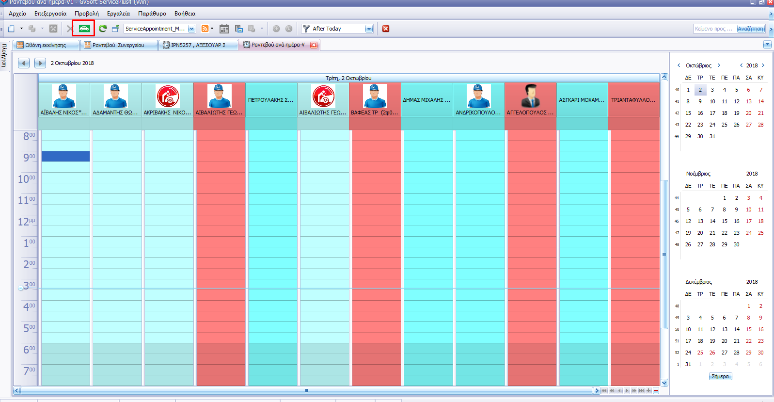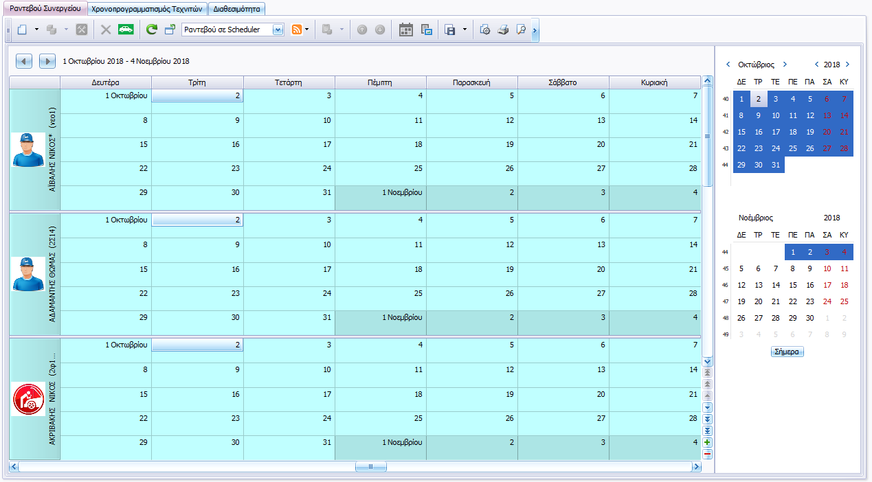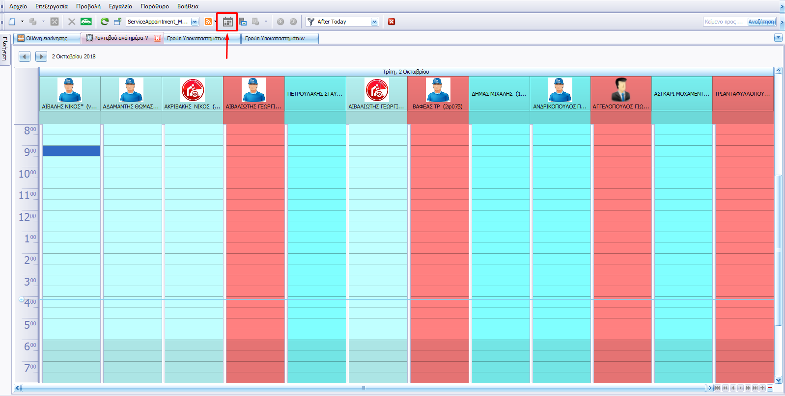 Στην οθόνη αυτή βλέπουμε τους τεχνικούς συμβούλους που εργάζονται στα καταστήματα του γκρουπ και τα σχετικά ραντεβού τους.