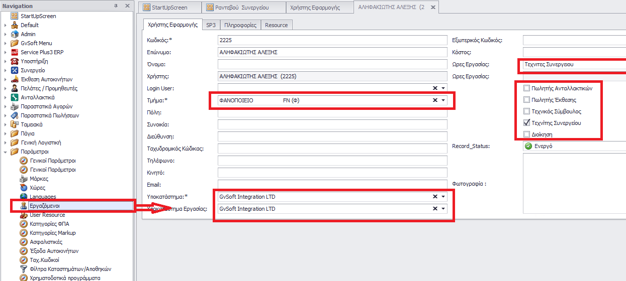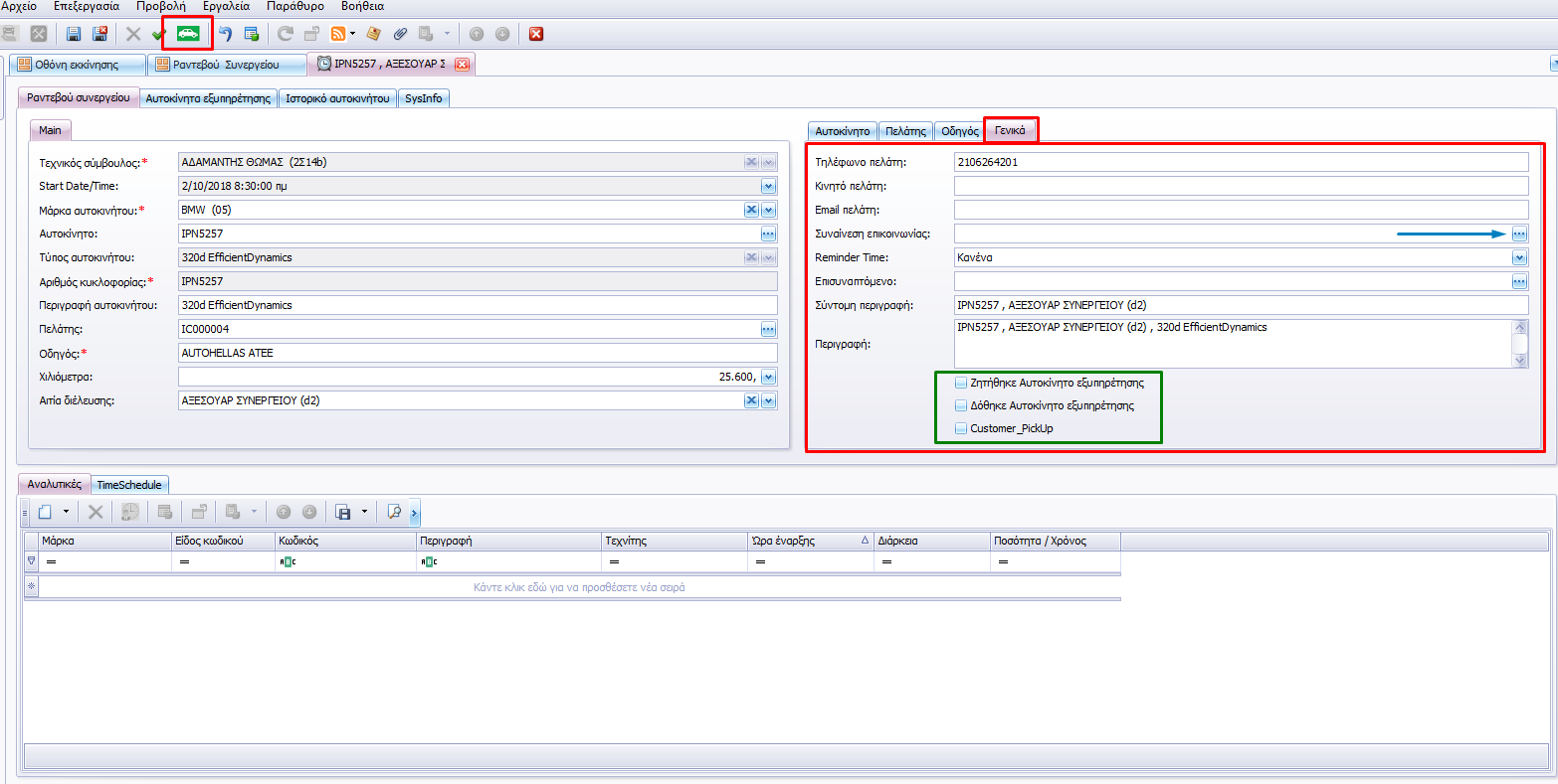 Στο TAB “Γενικά» μπορούμε να καταχωρίσουμε περισσότερες πληροφορίες για τον πελάτη. Στο ίδιο TAB, μπορούμε να καταχωρίσουμε πληροφορίες για αυτοκίνητο εξυπηρέτησης και Pickup.
