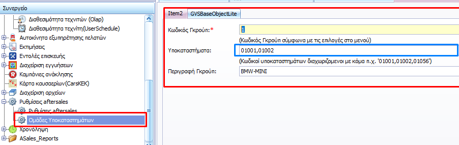 Για να λειτουργήσει αυτό θα πρέπει να δημιουργήσουμε στην ειδική επιλογή που υπάρχει στο μενού “Aftersales Setup” ένα ή περισσότερα γκρουπ καταστημάτων.