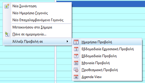 Από τις επιλογές που είναι διαθέσιμες με δεξί κλικ στην επιφάνεια του Scheduler, μπορούμε να επιλέξουμε το χρονικό διάστημα που θέλουμε να διαχειριστούμε