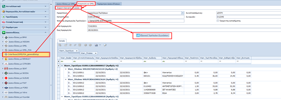 Με την διασυνδεση αυτή μπορουμε να ενημερώσουμε τα δελτία αποστολής και τα τιμολόγια ανταλλακτικών
