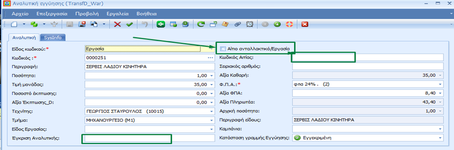 - Κωδικός Έγκρισης. Συμπληρωνεται όταν εχουμε καποιο κωδικο έγκρισης από το SAP