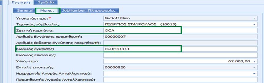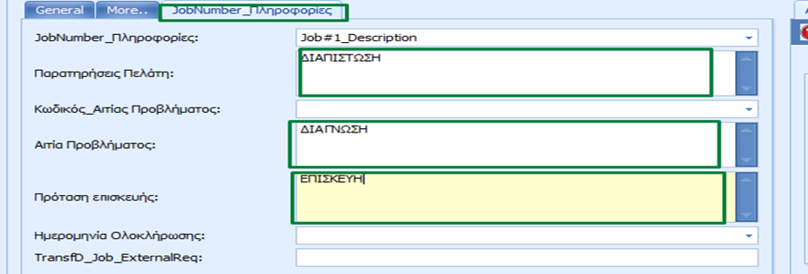 - Κωδικός Επισκευής/Ανάθεσης. Ο κωδικός αυτός θα μπει στο νέο πεδίο "Κωδικός Ανάθεσης Ειδικής Πολιτικής"
