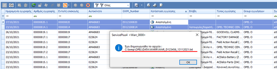 Ετσι θα δημιουργηθεί εένα αρχειο στη διαδρομή που εχει οριστει το οποιο μπορεί να γινει εισαγωγή στον SAP της OPEL