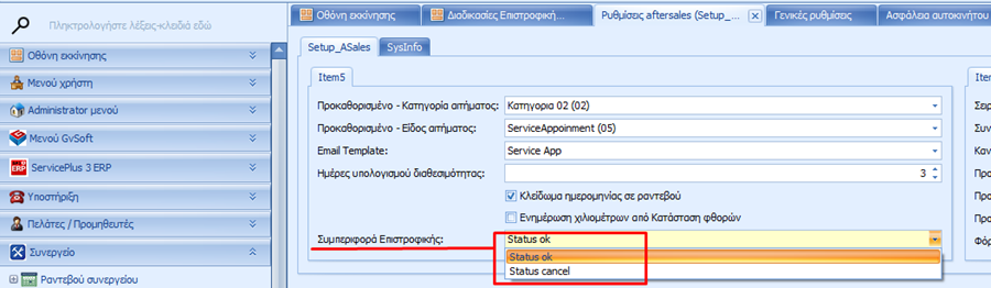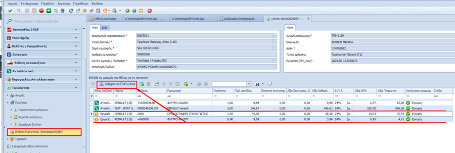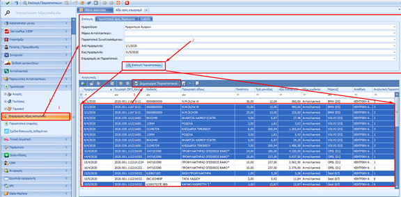 αλλαγή πελάτη κλπ). Οι γραμμές των ανταλλακτικών όμως χαρακτηρίζονται σε κατάσταση «Ακυρωμενη» διοτι τα ανταλλακτικά