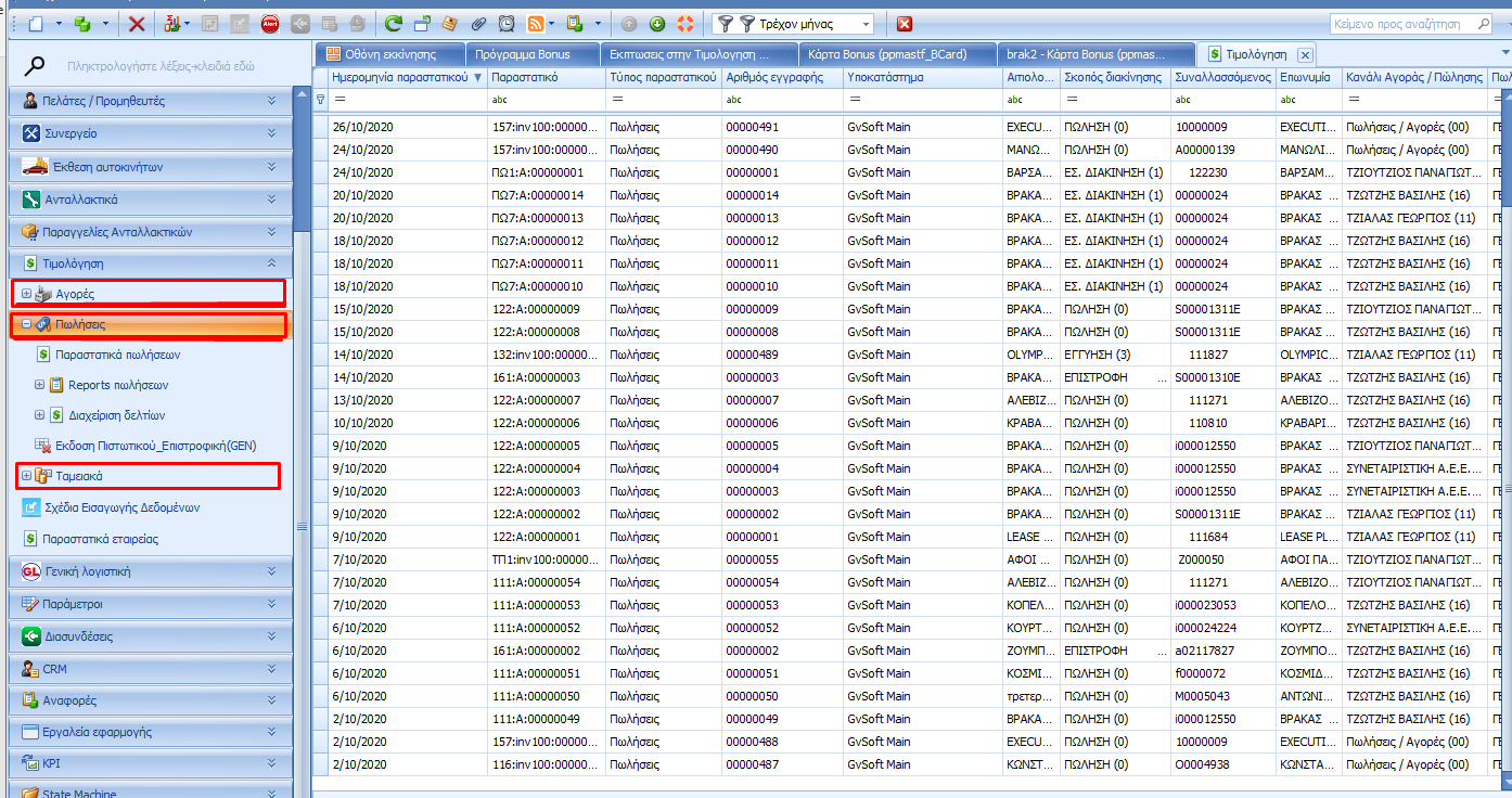 Στην τιμολόγηση περιλαμβάνεται η έκδοση παραστατικών πώλησης και η καταχώρηση τιμολογίων αγοράς και εξόδων και έτσι χωρίζεται σε δυο μεγάλες ενότητες, τις Αγορές και τις Πωλήσεις και τα ταμειακά τους.