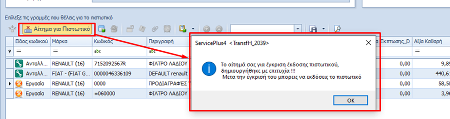 o StatusOk. Σημαινει ότι με την εκδοση του πιστωτικου με την διαδικασια της επιστροφικής, το Status των αναλυτικών για τα ανταλλακτικά θα γινεται “Εγκυρη” που σημαινει ότι θα μπορει να ξανατιμολογηθουν χωρις περαιτέρω διαδικασια.