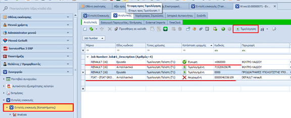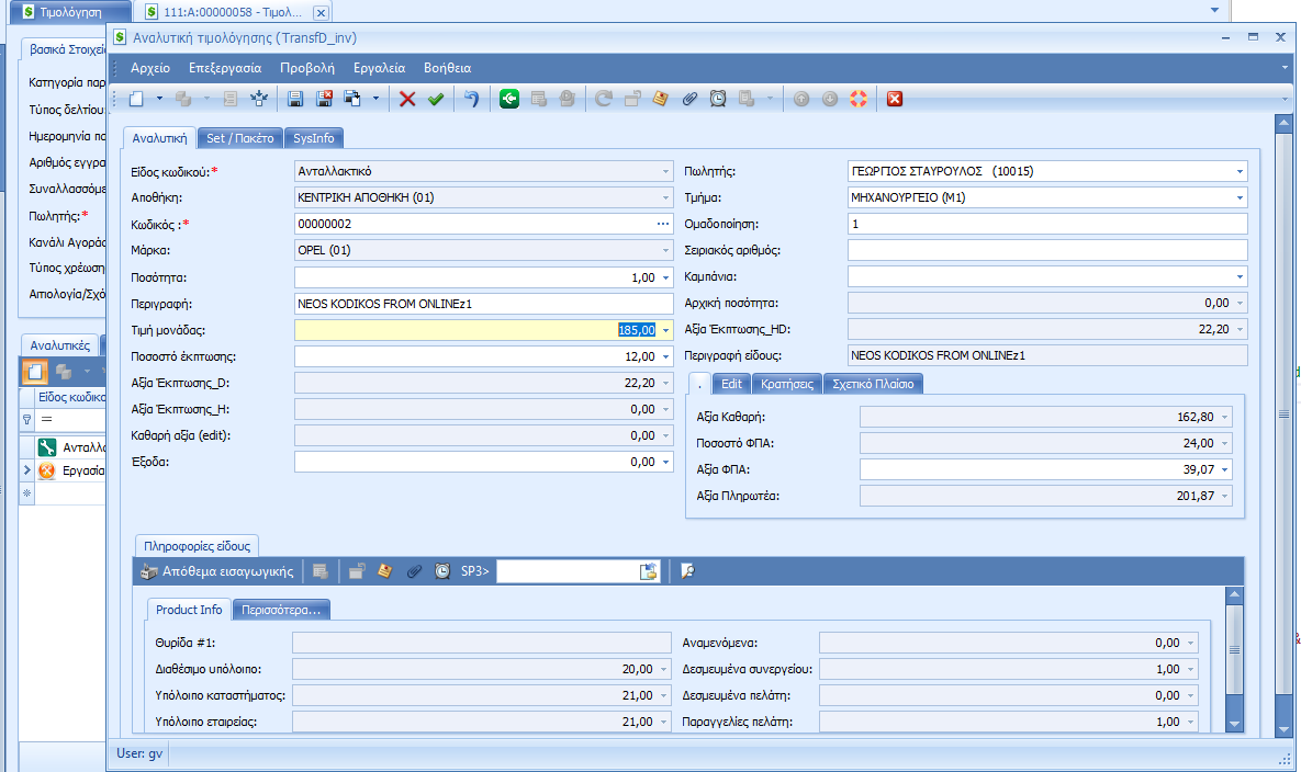 (π.χ. εκπτωση, αλλαγή πελατη κλπ). Οι γραμμες των ανταλλακτικών όμως χαρακτηρίζονται