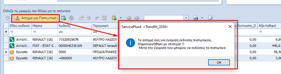 Ταυτόχρονα, στο μενου της αποθήκης στην επιλογη «Εγκριση πιστωτικού» εμφανίζεται το αιτημα, και πρεπει ο αποθηκάριος ή οποιος εχει την σχετική αρμοδιότητα να εγκρινει την εκδοση του πιστωτικού.