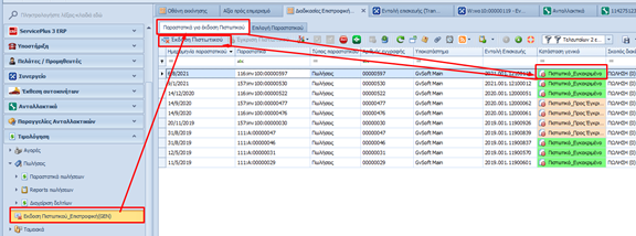 Μετά την αποθήκευση των παραστατικών, αυτά εμφανίζονται στη λίστα ‘Διαχείρισης δελτίων’ όπου μπορούμε να φιλτράρουμε και να διαχειριστούμε τα παραστατικά αυτά.