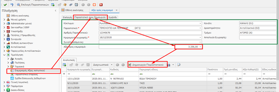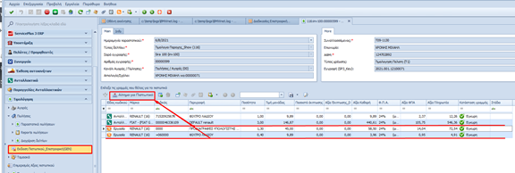 σχετιζονται με εντολή επισκευης. Επιλέγουμε το παραστατικό για το οποίο θελουμε