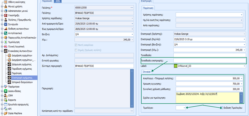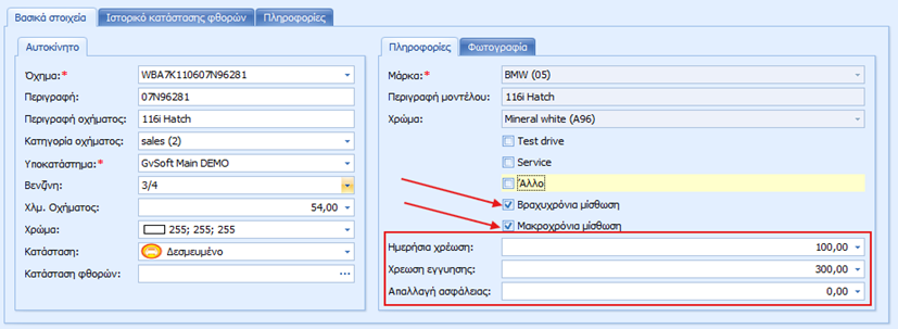ενοικίασης και την χρέωση για την εγγύηση.
