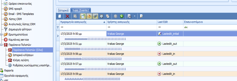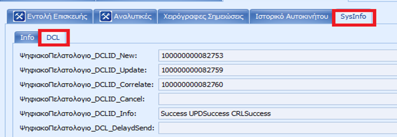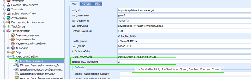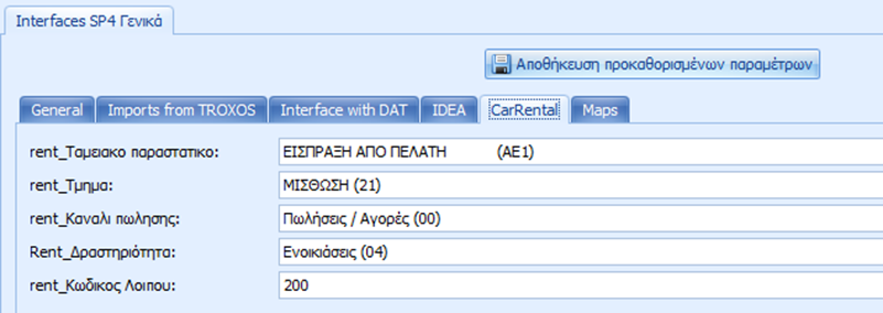 Τα πεδια συμπληρώνονται με τις εξης τιμες.