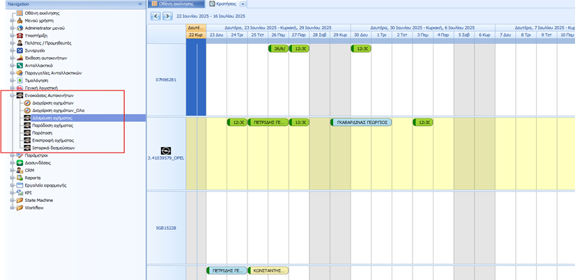 Αφου έχουν οριστεί τα αυτοκίνητα, από την επιλογή "Δέσμευση οχήματος” βλέπουμε σε Scheduler